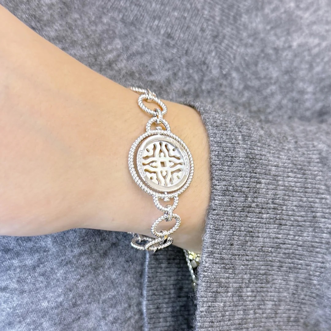 Браслет из серебра c фианитами и перламутром