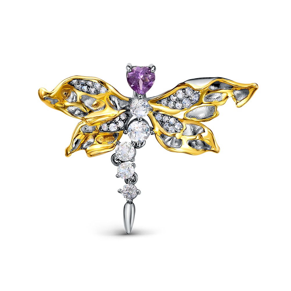 Брошь из серебра c аметистами