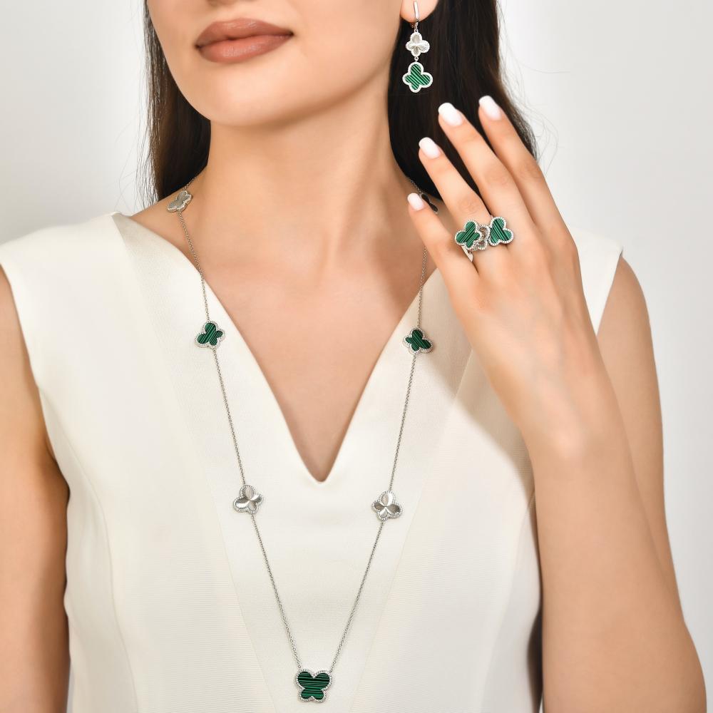 | Вставка | 5 Малахитов, вес 7,98; 328 Фианитов, вес 3,1 |