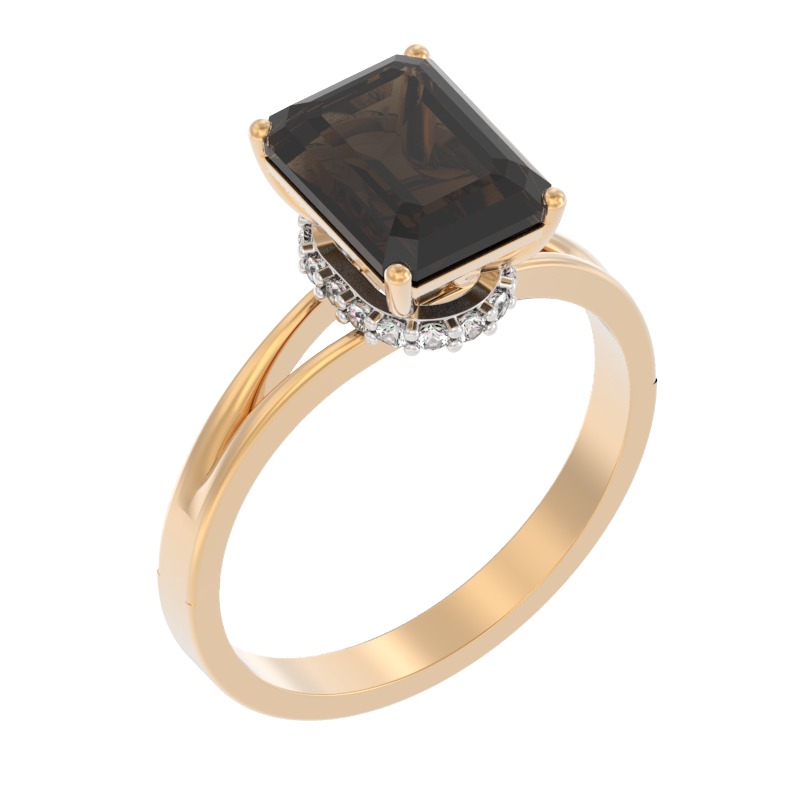 Кольцо из красного золота c фианитами и раухтопазом