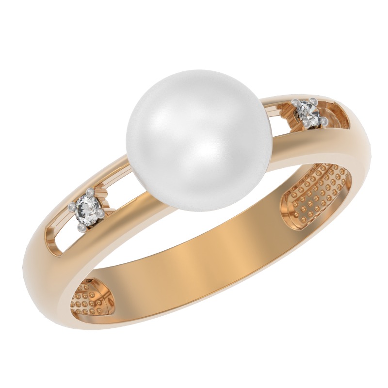 Кольцо из красного золота c жемчугом и фианитами