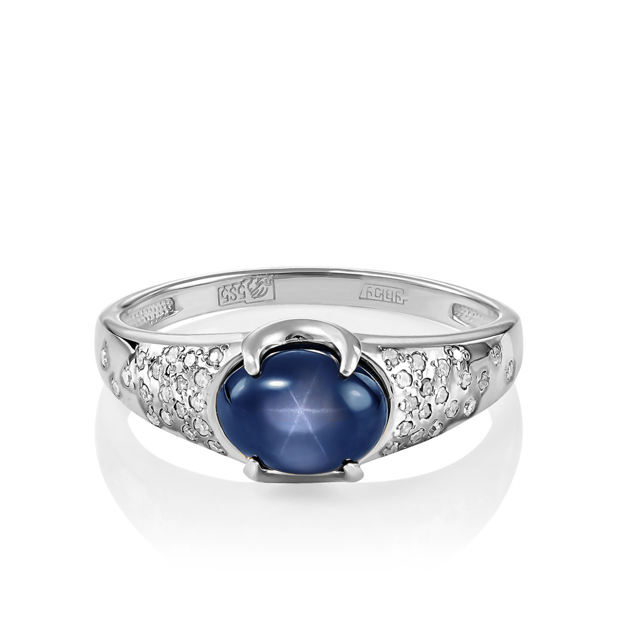 | Вставка | 1 Сапфир звездчатый, огранка овал, вес 1,962; 38 Бриллиантов, огранка круглая, граней 17, 2/2, вес 0,145; Родий |
