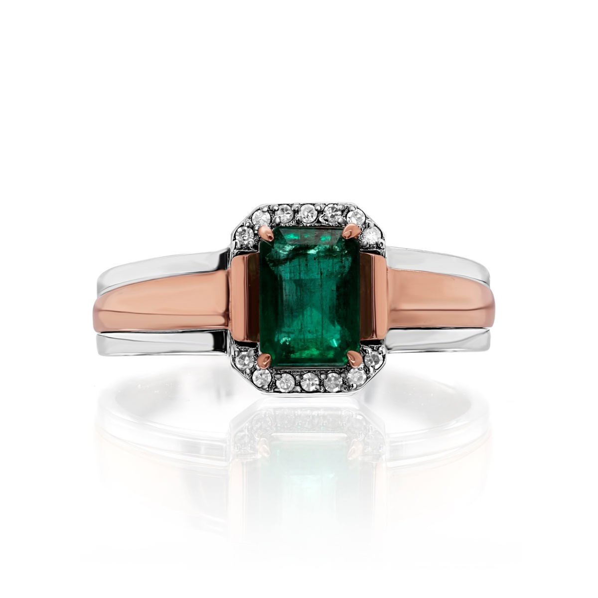 Кольцо из комбинированного золота c бриллиантами и изумрудами