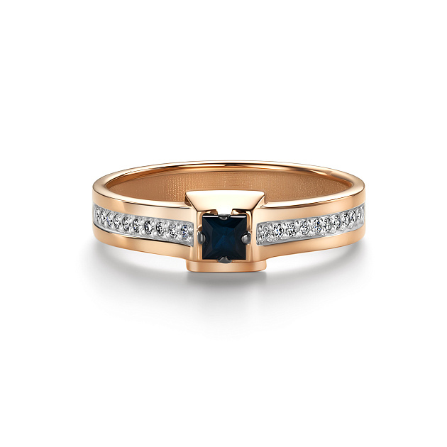 Кольцо из красного золота c бриллиантами и сапфирами