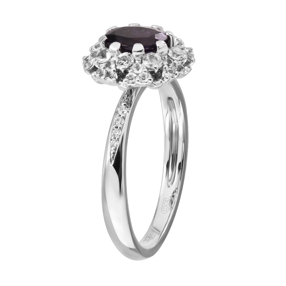 Кольцо из белого золота c бриллиантами и шпинелью