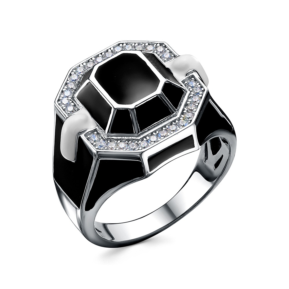 Кольцо из серебра c фианитами и эмалью