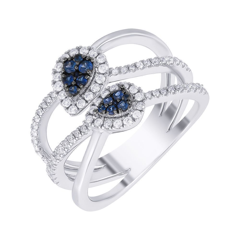 Кольцо из белого золота c бриллиантами и сапфирами