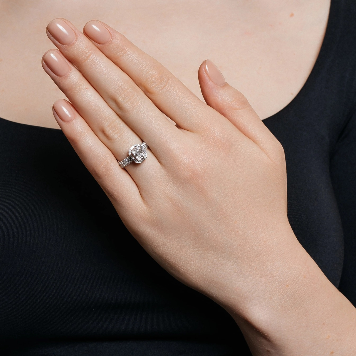 | Вставка | 74 Бриллианта, огранка круглая, граней 57, 3/5, вес 0,55; 11 Бриллиантов, огранка багет пр, граней 25, 3/5, вес 0,31 |