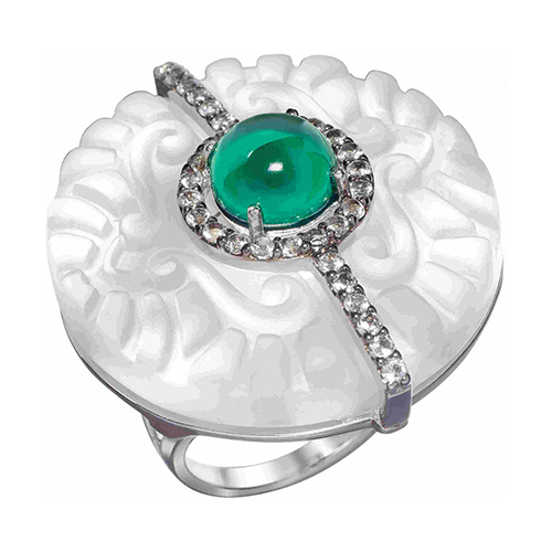 Кольцо из серебра c изумрудами, топазами и горным хрусталем