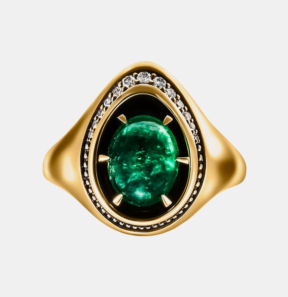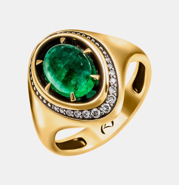 Кольцо из желтого золота c бриллиантами и изумрудами