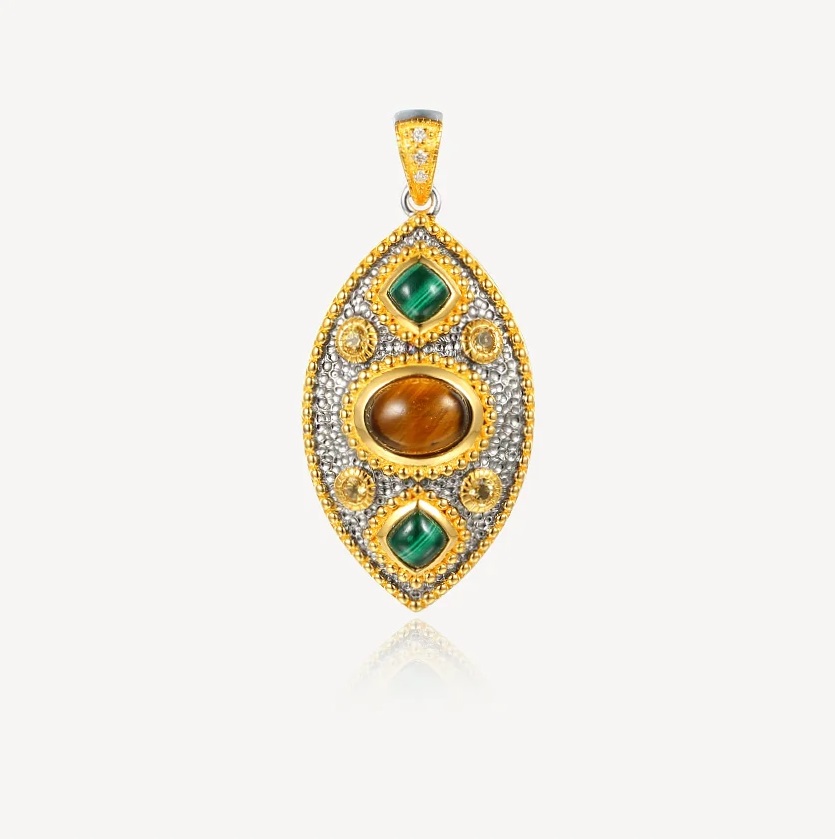 | Вставка | Тигровый глаз; Малахит; Цитрин; 3 Топаза, вес 0,02, цвет белый; Родий, цвет черный; Позолота |