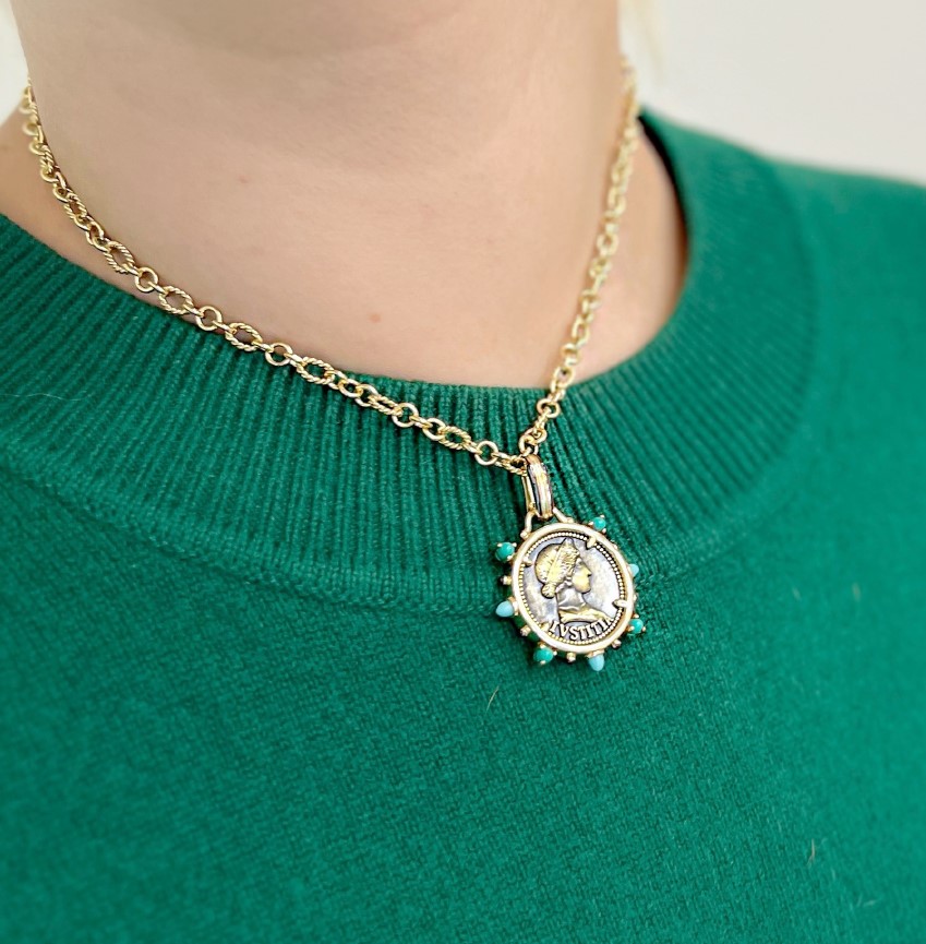 | Вставка | Монета(бижутерный сплав); Бирюза; Серебро; Позолота |