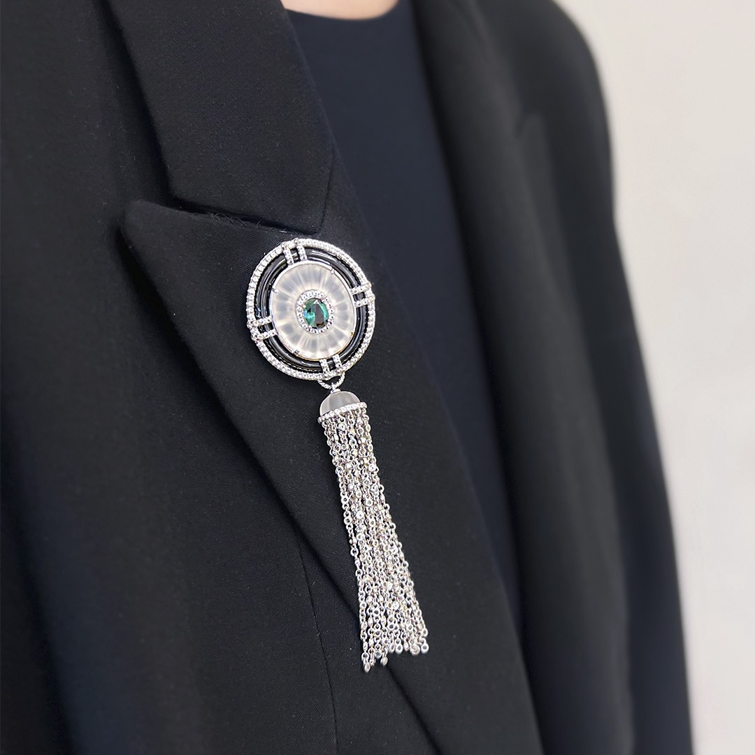 Брошь из серебра c изумрудами, топазами, агатом и горным хрусталем
