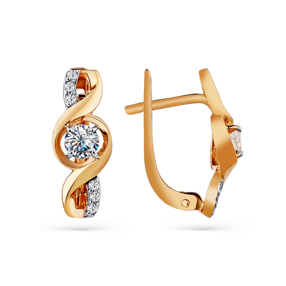 Серьги из комбинированного золота c фианитами