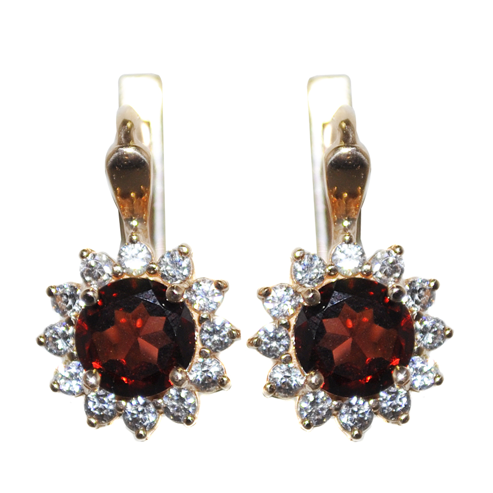 Серьги из красного золота c фианитами и гранатом