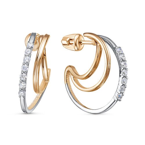Серьги из комбинированного золота c фианитами