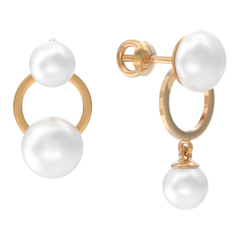 Серьги из красного золота c жемчугом