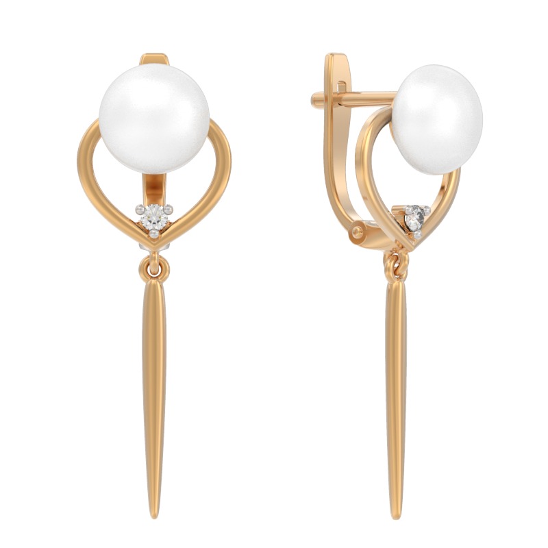 Серьги из красного золота c жемчугом и фианитами