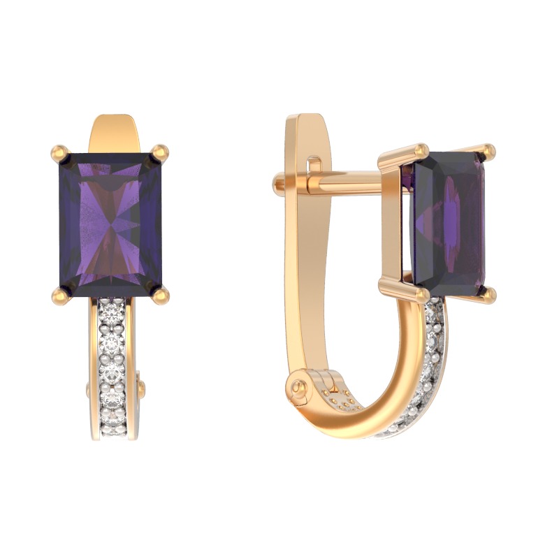 Серьги из красного золота c фианитами и аметистами