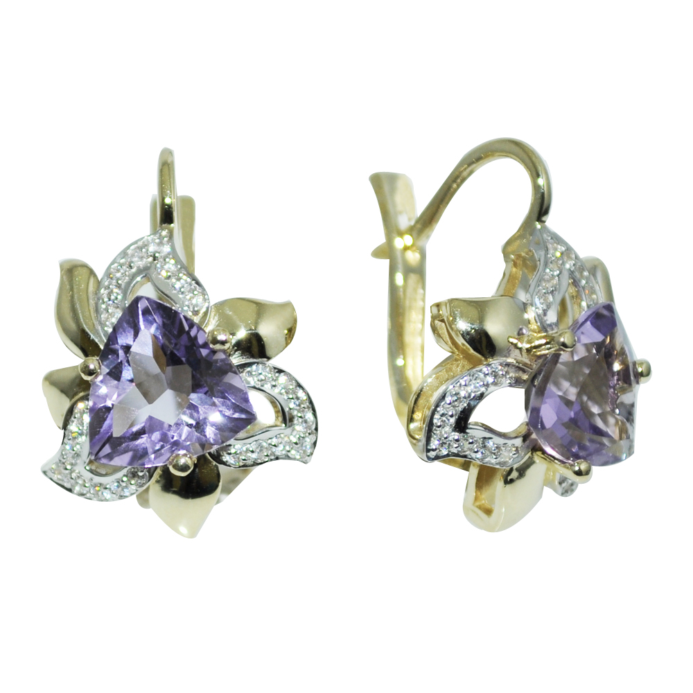 Серьги из комбинированного золота c бриллиантами и аметистами