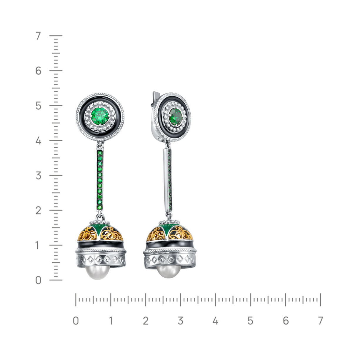 | Вставка | 24 Фианита, вес 1,776; 2 Жемчуга речных, вес 8,213; Родий; Эмаль холодная; Позолота |