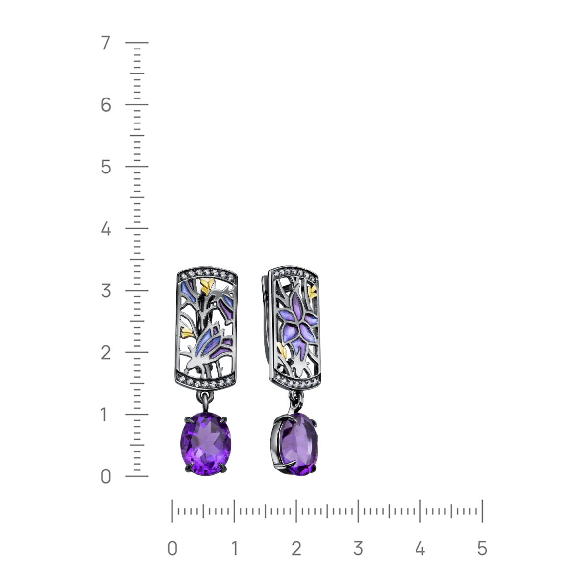 | Вставка | 28 Фианитов, вес 0,244; 2 Аметиста, вес 4,777; Родий; Позолота; Эмаль холодная |