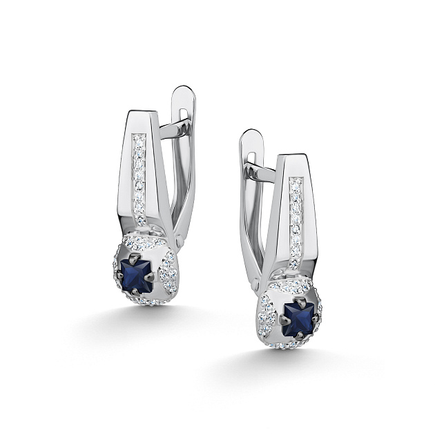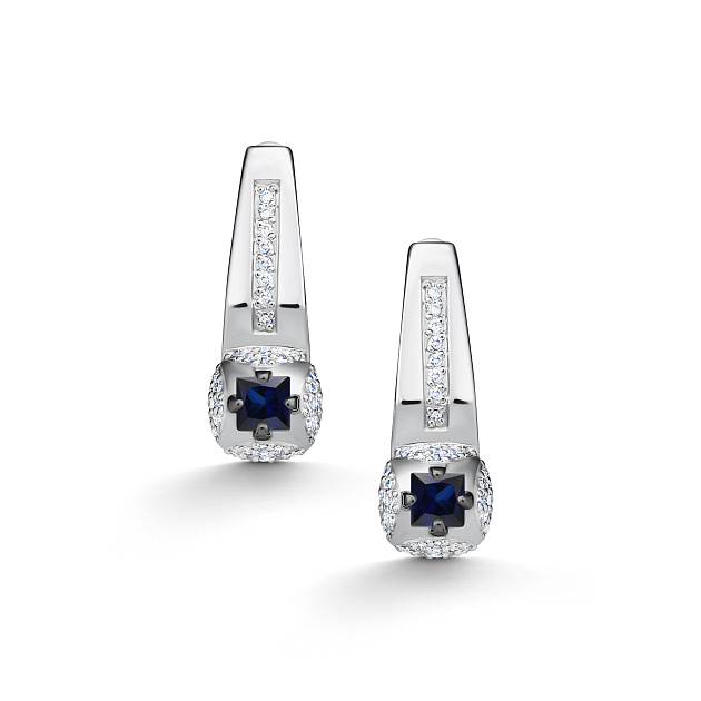 Серьги из белого золота c бриллиантами и сапфирами