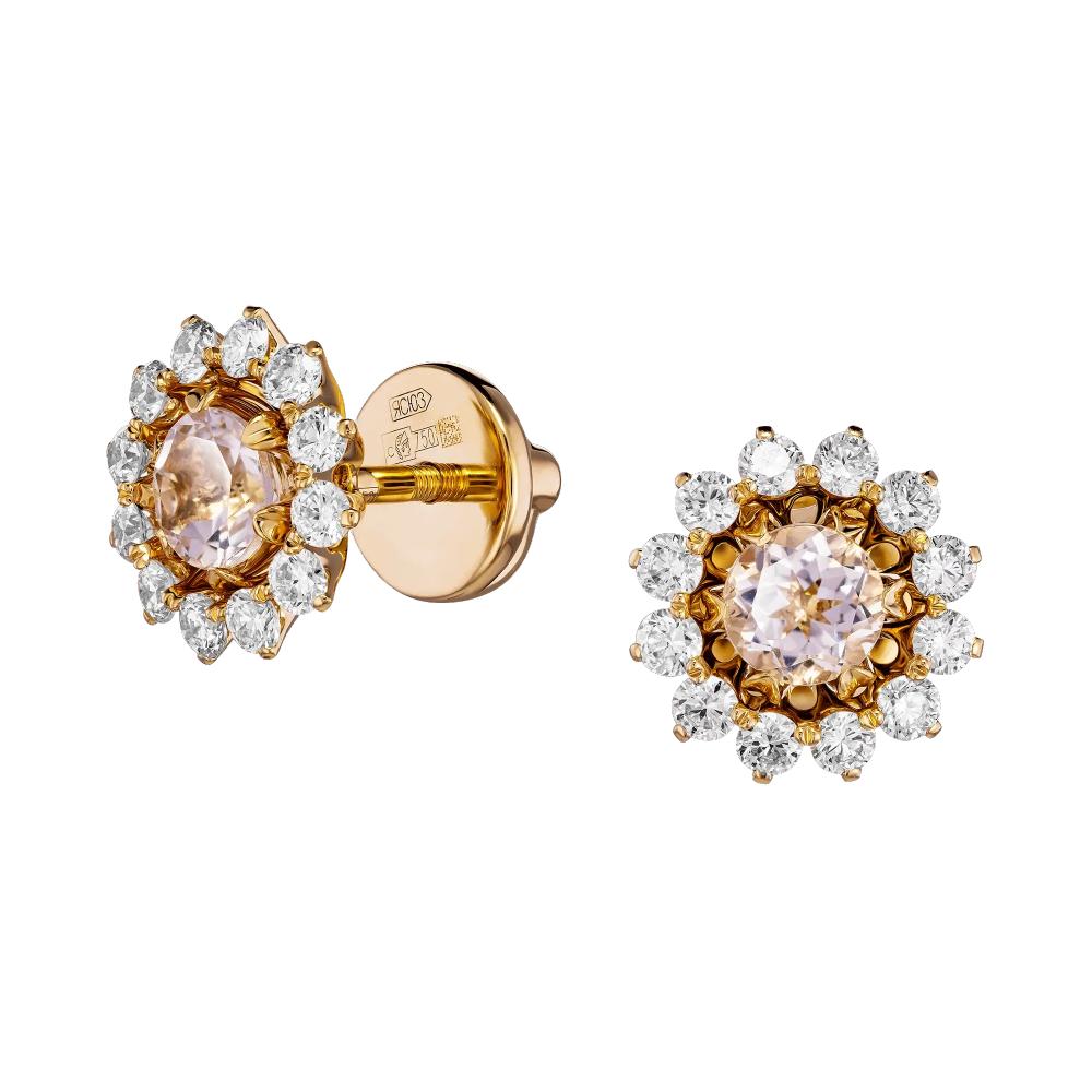 Серьги из желтого золота c бриллиантами и морганитом