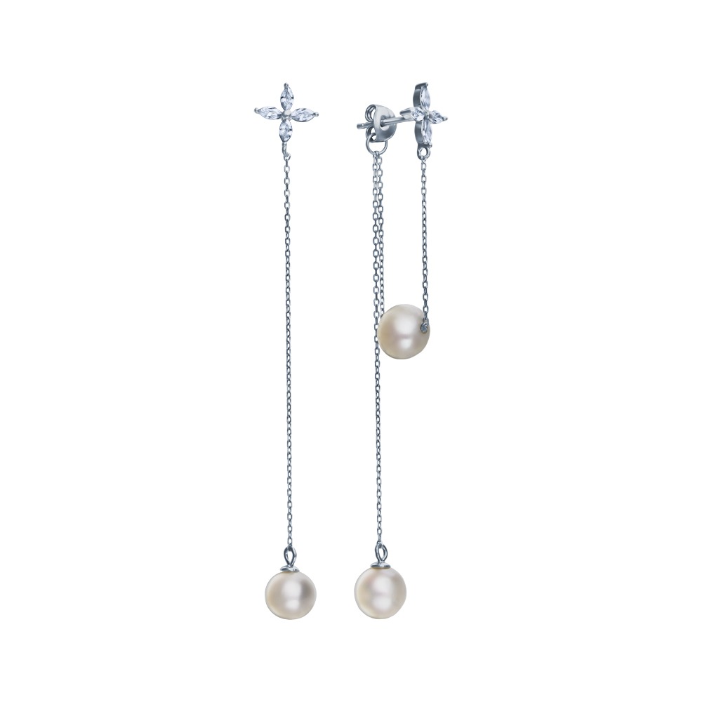 Серьги из серебра c жемчугом и фианитами
