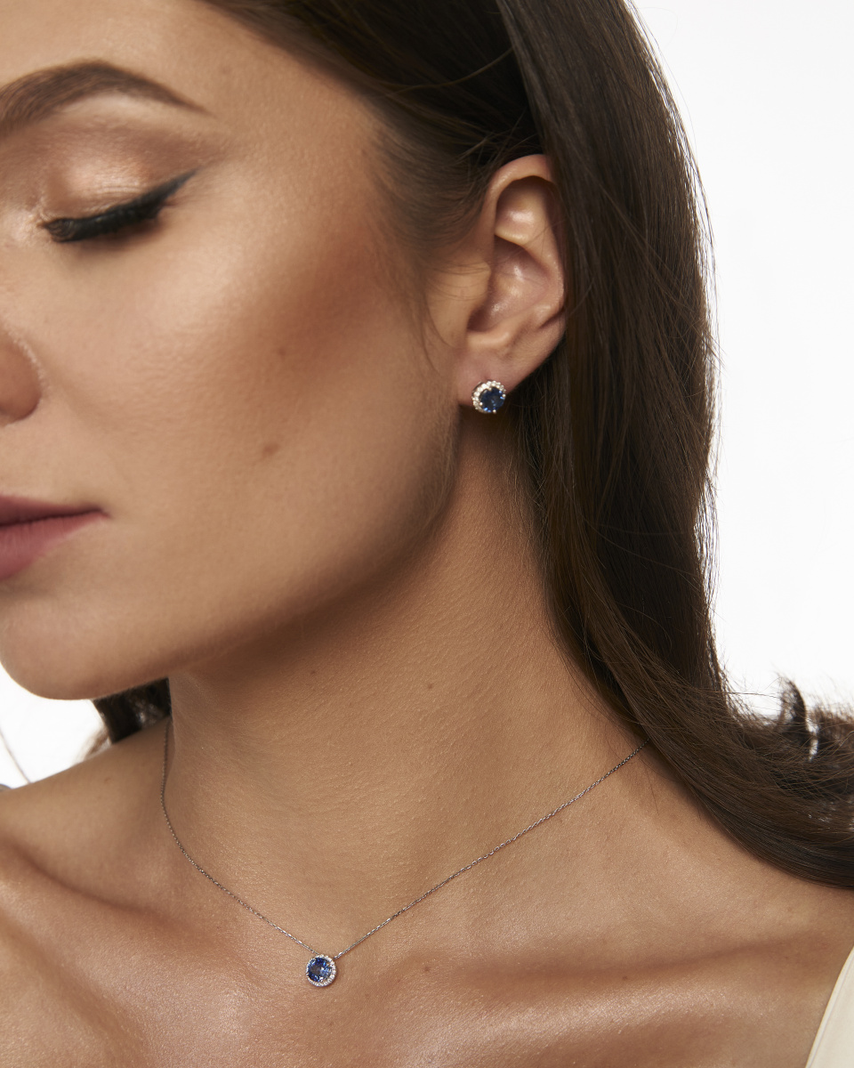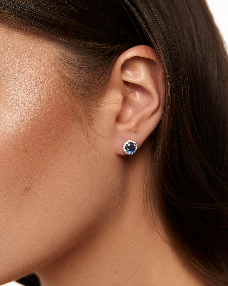 Серьги из белого золота c бриллиантами и сапфирами