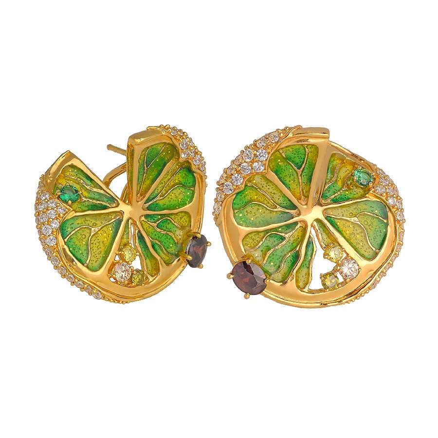 Серьги из серебра c фианитами и эмалью