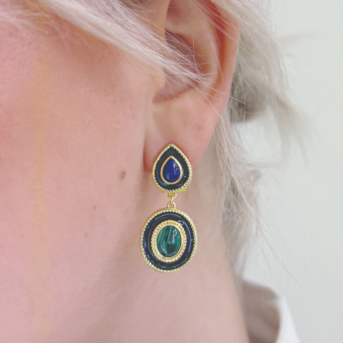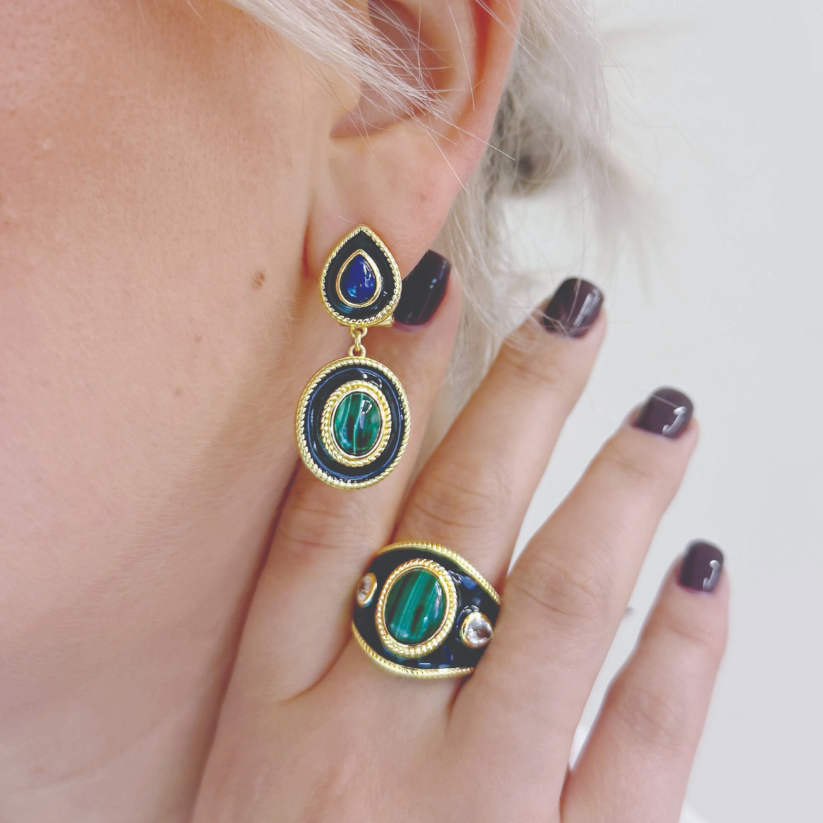 Колье из серебра c лазуритом, ониксом и шпинелью