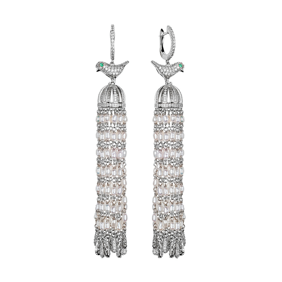 Серьги из серебра c изумрудами, жемчугом и топазами