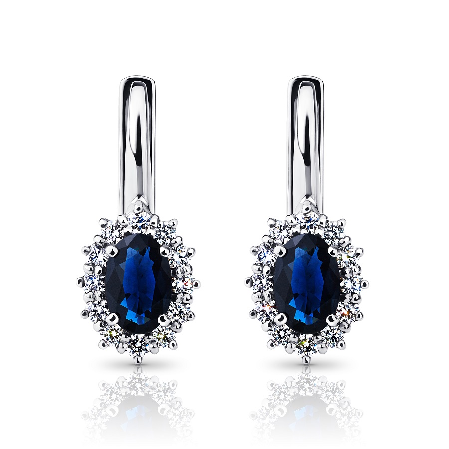 Серьги из белого золота c бриллиантами и сапфирами