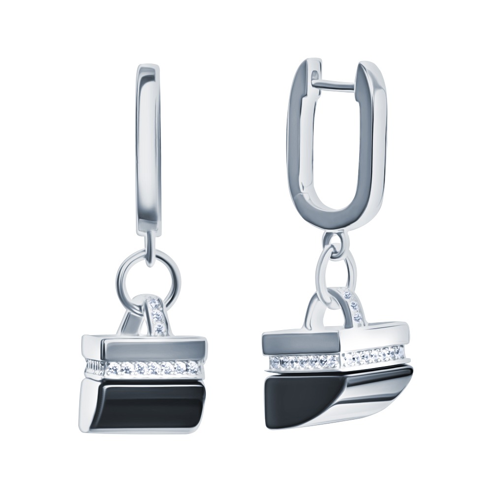 Серьги из серебра c фианитами и ониксом