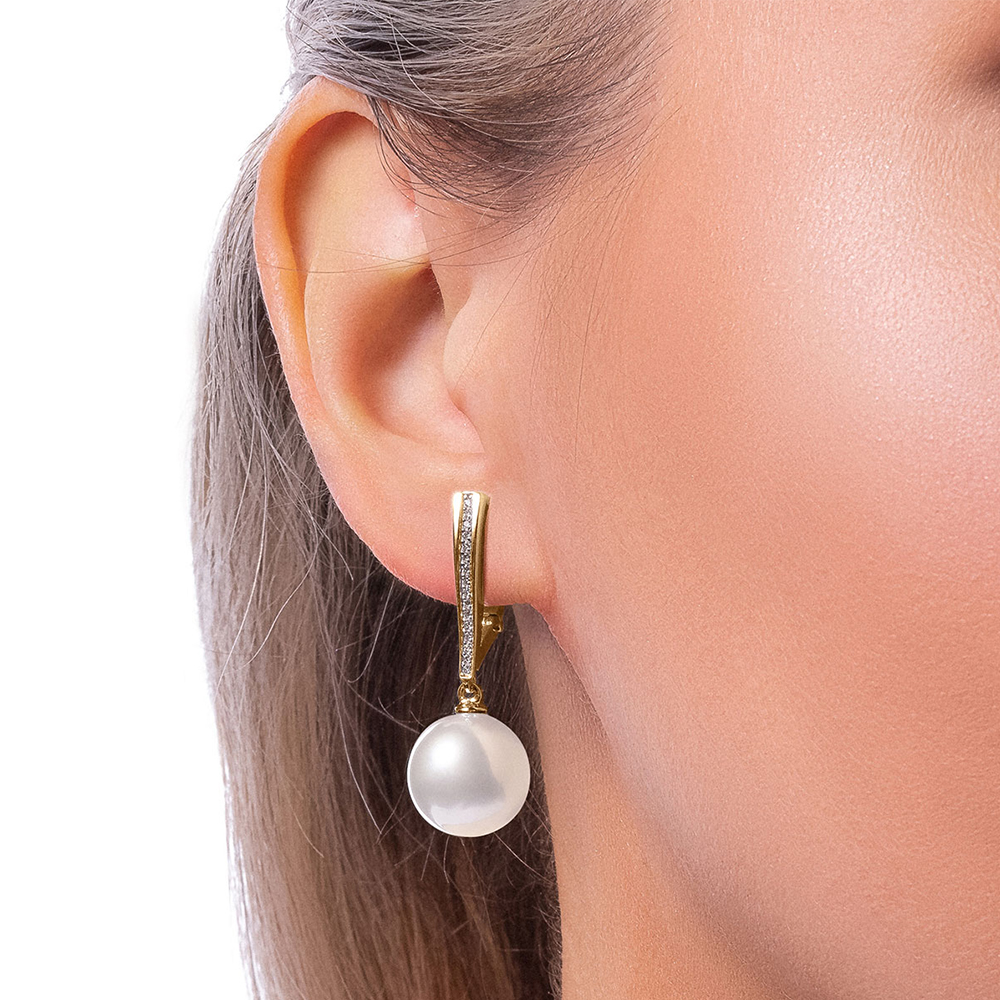 Серьги из желтого золота c бриллиантами и жемчугом